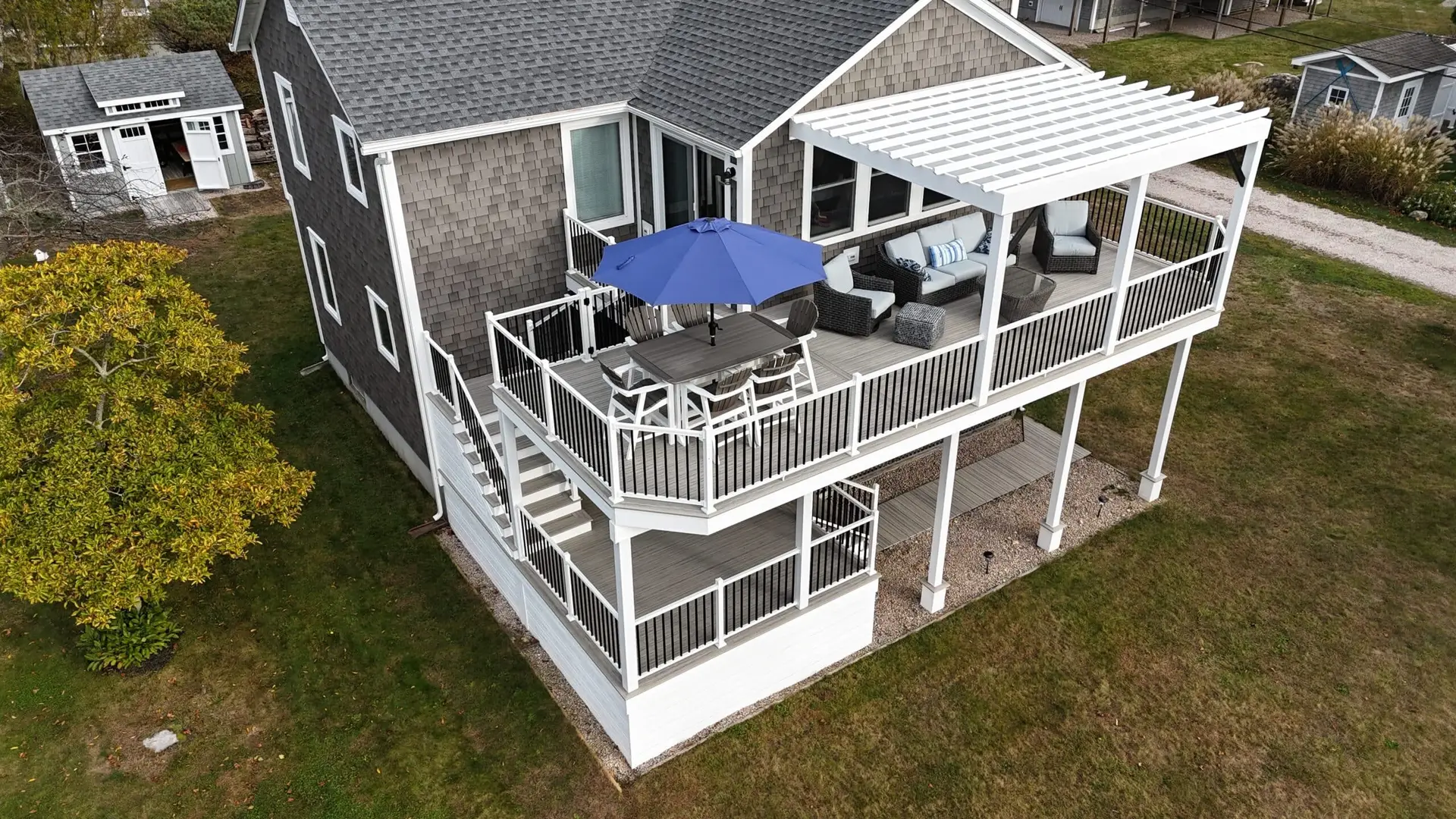 Experience the full potential of your backyard with Ravin Builders. Our expertise spans from crafting award-winning composite decks to designing patios, hardscapes, pergolas, and other outdoor structures – all custom-made to suit your unique taste and lifestyle.